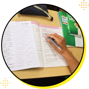 志望大学の過去問題・予想問題 の入試演習や解説のほか、マークシート式の模擬試験や推薦入試の頻出問題など実戦形式の学習も行います。受験科目により多くの時間を割き、受験本番に備えます。